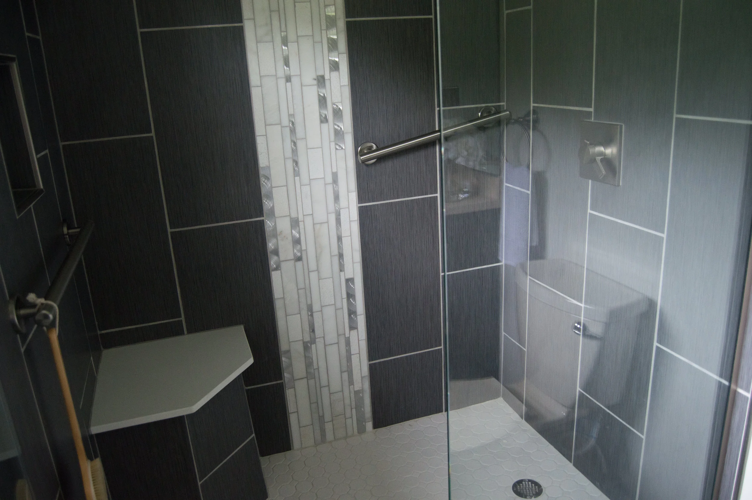 Contemporary tile selections, dazzling accents and modern Delta hardware