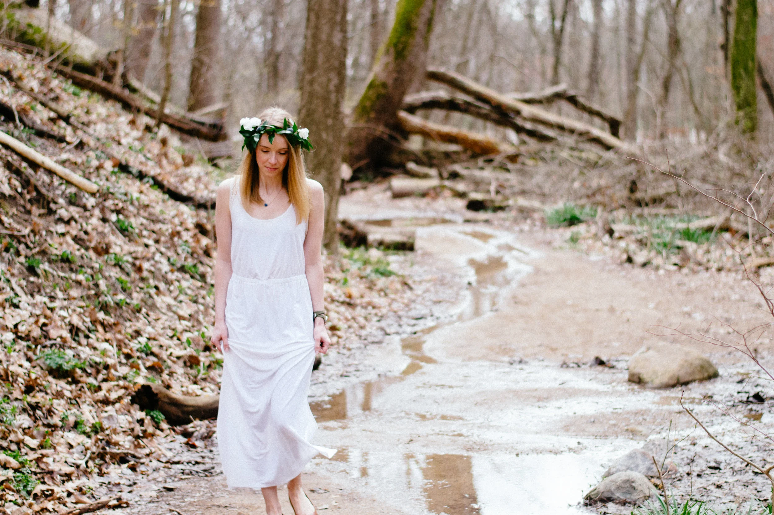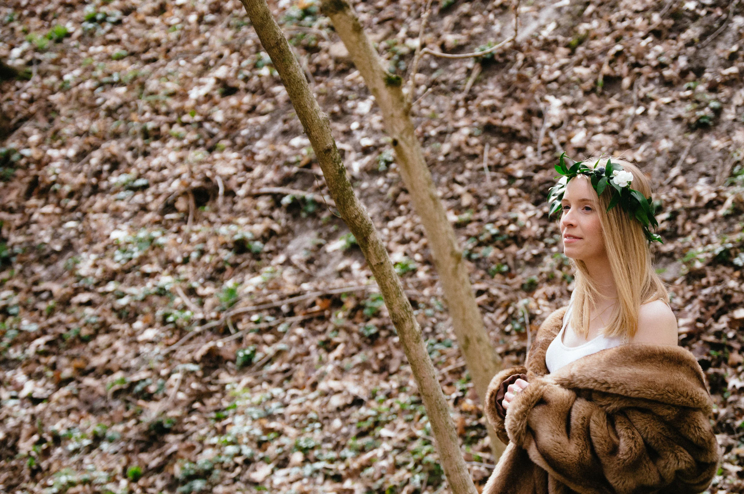 Lindsay created the most darling little crown with blue thistle and white floral accents. For my second session, I added a few pink ranunculus (thanks Trader Joe's) to switch things up. Styling and makeup by yours truly. I stole the Game of Thrones-eque fur coat from my auntie - I'm gonna give it back, promise. Winter is Coming.